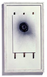 Indem ich das Gesehene benenne, öffnet es sich dem intellektuellen Zugriff. Vage Erfahrung wird präsent. Erscheinung wird direkt ablesbar. Etwas erscheint nicht nur als Vorder- und Hintergrund, sondern ist gleichzeitig auch vorder- und hintergründig gemeint. Eine Form sieht nicht nur ausradiert oder beschädigt, klar umrissen oder frei aus – sie ist auch so zu verstehen. Gleiches gilt für die verwendeten Medien: der Computerdruck ist nicht nur zeitgemäßes Medium, er repräsentiert auch meine Zeit – indem markante Eigenschaften ablesbar werden, inhaltliche und formale, subjektive und soziale, Eigenschaften der Beschaffenheit und des Ausdrucks, der Denkart und der Mentalität. Indem ich genau hinsehe und kläre, was da ist und wie es gemacht wurde, lege ich die Basis für Verständnis, das ich aus mir heraus dazugebe, aus einem eigenen Reichtum, gemeinschaftliches Gut nur in Teilen. Indem ich mir des Prozesses der Wahr-Nehmung bewusst werde, aktiv sehe, mir meiner selbst gewahr werde, beginne ich, die mich jeden Tag überrollenden Informationen auf eine neue Art zu nutzen.